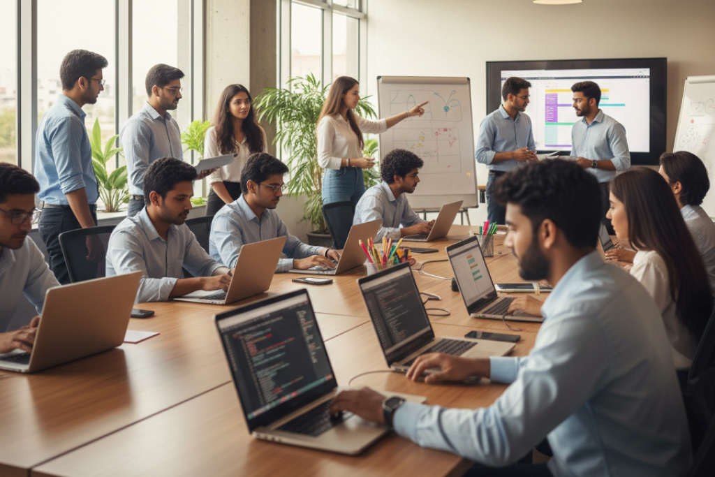 Training sessions at Ether InfoTech are conducted by experienced professionals through a mix of theoretical lessons, practical exercises, and project work. Both classroom and online training options are available to cater to different learning preferences.